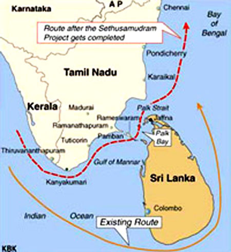 The Sethu Samudram Ship Canal project will enable vessels to save on time taken to circumnavigate the Sri Lankan island while going from west to east. It is a commercial proposal as other famous canals in the world such as the Suez or Panama. The project will save millions of rupees every year for the country. Why should the politicians obstruct that with a hope that it can get them the vote of a community that is so much divided in thousands of castes? Let them drop their myth.